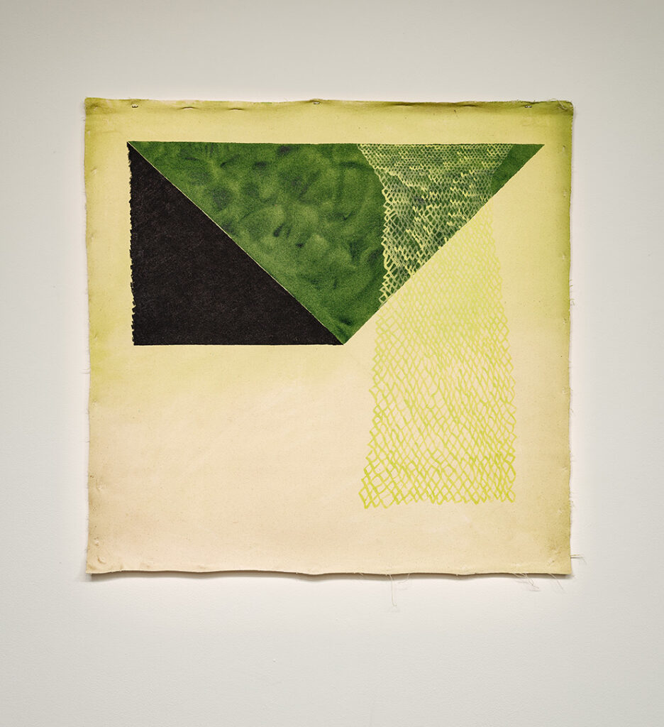 Acrylic on unstretched canvas, cardboard tube, builders twine
