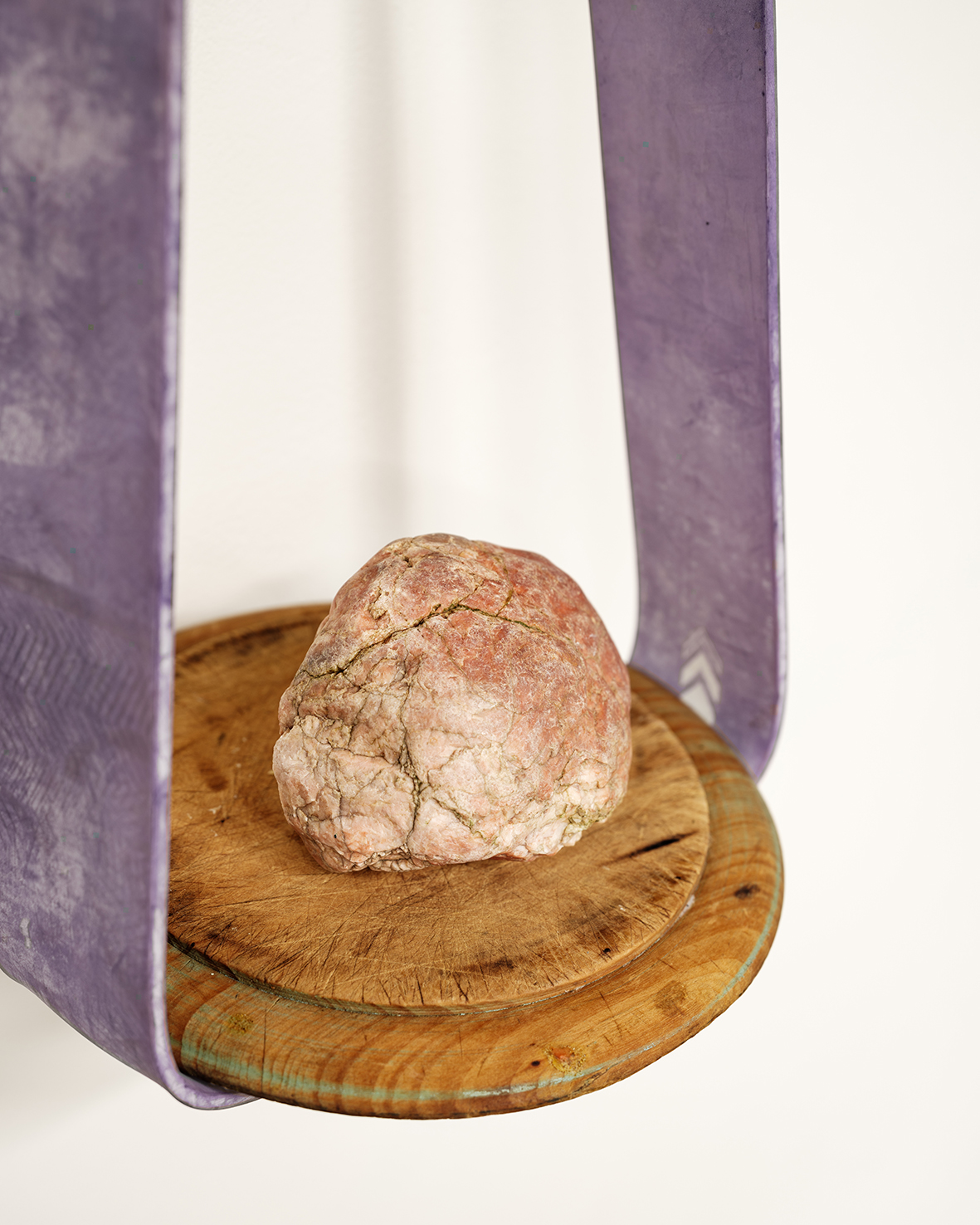 Suspended DialogueCommercial rubber exercise band, rock, antique breadboard, steel commercial shelf bracket2024